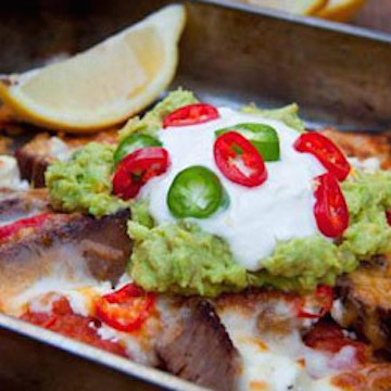 - Serve immediately with a dollop of guacamole and sour cream, a scattering of extra chillies and a wedge of lemon.Recipe via: